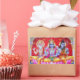 Stickers featuring an image of Brahma, Vishnu, and Shiva.