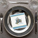 Celebrate Sicilian heritage with these elegant Trinacria napkins, featuring the island’s iconic three-legged symbol representing the “three points” of Sicily. Inspired by traditional Sicilian ceramics, the design showcases cool grey, white, and blue tones with tasteful yellow accents, framed by a serene blue border and delicate yellow pinstripe.