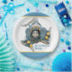 Trinacria of Sicily Three-Legged symbol paper plates. The Triancria is the symbol of Siciliy, the three legs signify the "three points" of the Island. A beautiful depiction of the traditional ceramics of Sicily in cool tones of grey, white and blue with yellow accents. The plate is bordered with blue and a fine yellow pinstripe. There is a template provided so that you can type in anything you like. (ie, family name, a person's name, or an event name)