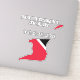 Trinidad and Tobago Flag Map Outline Sticker in the outline of the Trinidad and Tobago map. The map is infused with the pattern and the colours from the Trinidad and Tobago national flag. Small stickers with the country name are also included. Trinidad and Tobago map sticker is the perfect sticky gift that can be placed anywhere your heart desire. © 2023 CountriesOfTheWorld