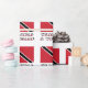 The Trinidadian and Tobagonian Flag is red with a black diagonal stripe and white diagonal stripes on either side of the black one. Below the flag are the words TRINIDAD AND TOBAGO. Fun gift wrapping paper to share your heritage.