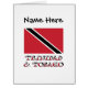 Design big, blank inside, greeting card shows the flag of Trinidad and Tobago. Below, the words TRINIDAD & TOBAGO, in the red, black, and white colours of the flag. Above, a place for a name to personalise for yourself or give as a gift.