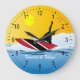 Trinidad and Tobago wall clock with awesome text and graphics featuring a surfer riding the trini waves....maybe at Toco! Available in round(medium and large) and square.Choose your style and size.