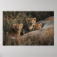 Kenya, Maasai Mara, Trio of six week old Lion cubs sitting besides mother lion | Adam Jones / DanitaDelimont.com | AF21 AJE0983