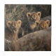 Kenya, Maasai Mara, Trio of six week old Lion cubs sitting besides mother lion | Adam Jones / DanitaDelimont.com | AF21 AJE0983