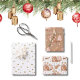 Trio Pink Brown Gingerbread Houses Stars Cinnamon Wrapping Paper Sheets.