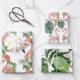 Trio Tropical Pink Christmas Flamingo Red Santa Hat Wrapping Paper Sheets.
