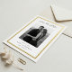 Announce your upcoming wedding with these elegant save the date cards by Redwood and Vine Design Co, featuring a vertical photo against a framed by a decorative border in beautiful gold foil. "Save the Date" appears in flowing calligraphy script, with your wedding date, names, and location beneath your photo.