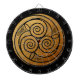 Dramatic black and gold intricate triple Celtic knot swirl mandala. Eternal spirals and trinity knots adorn an ancient parchment