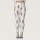 These leggings have a mid-century modern design of sets of two diamond outlines with one solid diamond, in greys, gold, orange, blue, and tan, scattered about the design on a field of off-white. If you like the design but prefer different colours, message me.