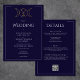 Set the tone for a timeless and dramatic celebration with this unique wiccan two-sided wedding invitation, perfect for dark romance and pagan-inspired weddings. Featuring a dark night blue background, old-world gothic fonts, and a striking gold triple goddess emblem, this invitation evokes simple elegance. The back includes essential wedding details like RSVP, reception info, and your wedding website. This design brings both bold character and alchemist charm to your big day, and is a budget-friendly option to invitations requiring enclosure cards. Created by Simply Farmhouse Press.