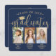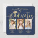 It's a triple graduation party! Announce the achievement of three graduates and invite family and friends to celebrate with stylish joint graduation party square photo invitations. All pictures and wording are simple to personalise, and the colours can be customised using the Zazzle design tool. (IMAGE PLACEMENT TIP: An easy way to position a photo exactly how you want is to crop it before uploading to the Zazzle website.) This template is a combination announcement card on the front with the grad party invitation on the back. The modern navy blue and gold design features handwritten style script calligraphy with a mortar board cap, elegant classic typography, and 3 photos of your choice, such as senior pictures or images from the commencement ceremony. Please note that gold is printed colour, not metallic foil. This graduation invitation card is a stylish way to announce a special day celebration for any three grads, such as siblings, best friends, cousins, triplets, teammates, brothers and sisters, etc. Congratulations to the graduates!
