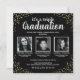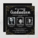 Stand out in style with our elegant joint graduation invitations, featuring a customisable stylish black background. Each invitation is adorned with a sprinkle of gold confetti glitter, showcasing photos of all three graduates, and it's all tied together with our modern triple celebration template. Personalisation has never been easier or looked so chic.