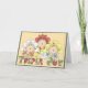 Three cute prim folk art babies with bonnets and bunches of flowers, and the word art "Triple Joy" in patchwork letters. A wonderful card to announce the birth of triplets, or to congratulate a couple on their three new babies! There´s matching postage stamps, too.