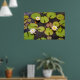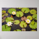 Elevate your interior design with the balanced, natural geometry of the Triple Lotus & Lily Pad Pattern Poster. Captured from a unique bird’s-eye view, this photograph showcases a trio of pristine white-water lilies nestled among a mosaic of floating green and bronze lily pads.