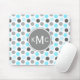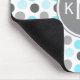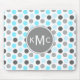 Trendy, chic, girly blue and grey polka dot pattern with customisable trio of monograms representing your first, last and middle names. A cool, modern, geometric monogrammed gift for her.