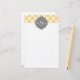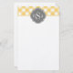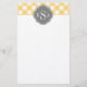 Triple Monogram Grey Yellow Gingham Pattern Stationery