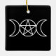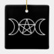 Bring a mystical charm to your holiday décor with this square Christmas ornament featuring a white Triple Moon Pentacle against a striking black background. The Triple Moon, symbolising the phases of the moon—waxing, full, and waning—honours the divine feminine and the cycles of life, making it a meaningful addition to any witch, Wiccan, or pagan’s seasonal decorations.