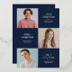 Make graduation extra special for 3 graduates with these real silver foil joint graduation invitations! Celebrate all three of your grads with a timeless and modern triple celebration template that is simple to customise! Create the perfect graduation invites with a navy blue background that can easily be changed to any colour that you desire. Showcase your graduates’ photos and proudly display their accomplishments. Perfect for a triple celebration, our one-of-a-kind designs and easy-to-customise templates are sure to make this special occasion a lasting memory for years to come. You can adjust the wording on the back of the invite to make this into a graduation announcement.