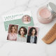 Showcase your expertise with this stylish, contemporary photo card, designed for fashion stylists, makeup artists, and photographers. Featuring a clean, minimal layout, the design highlights a triple portrait display at the top perfect for showing off signature looks or portfolio samples alongside a large circle profile photo. Essential contact details and social media handles are clearly presented, making it effortless for clients to connect. Soft green, white, and grey tones add a fresh, modern touch, lending a professional yet approachable vibe to your promotional materials.