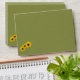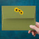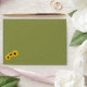 The magic number is three! This envelope is adorned with three sunflower photographs on the front and back flap over a textured green background for a special mailing occasion.