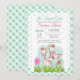 Baby Shower for Triplet Girls - three adorable giraffe babies in a field of flowers - bows on their horns, (called ossicones) their little spots are actually little pink hearts - this is just too cute - all set on a green gingham background - perfect for a triplet girl baby shower - all text is fully customisable.