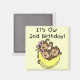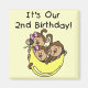 Three little monkeys, two girls and one boy, and a big yellow banana on Triplets 2nd Birthday T-shirts, bodysuits, tote bags, cards, stickers, magnets, and much more.