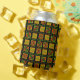 This can cooler has a Black History design of circles, triangles, diamonds, lines, and zigzags forming a pattern.