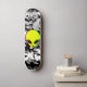 Trippy Alien Camo Skateboard Deck by BigTexFunkadelic, featuring a grey and white background with a yellow psychedelic alien head in the center.