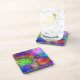 Colourful and vibrant hard plastic coaster set with cork back featuring Trippy Beach design