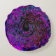 Trippy Black and Magenta Retro Liquid Swirl Round Cushion