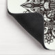 Trippy mousepad with a black and white cool psychedelic mandala digital ink illustration with mushrooms and plants.