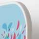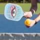 Psychedelic eye pickleball paddle with a colourful illustration of a weird blue eye with big curled pink eyelashes, light blue tears flowing everywhere and many pink and green elements - extensions of the eyelashes.