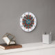 Trippy psychedelic clock with a groovy mushroom mandala with eyes and flowers. The funky style of this illustration resembles hippie art from the sixties.