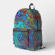 These All Over Printed Backpacks feature a Trippy Sky Blue Abstract Retro Liquid Swirl with Magenta, Yellow, Aqua, Purple, Turquoise, and Red Accents. The result is a colourful, trippy, groovy, marbled abstract design that you will love!