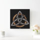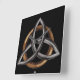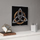Triquetra (pronounced /traɪˈkwɛtrə/) is a noun derived from the Latin tri- ("three") and quetrus ("cornered"). Its original meaning was simply "triangle". Nowadays, it has come to refer exclusively to this more complicated shape: formed of three vesicae piscis, often with an added circle (as seen here). Much like its predecessor: the triangle, it's used to symbolise the power of things and persons that are threefold.