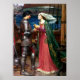 A reproduction of " Tristan and Isolde Sharing the Potion" of 1915 by John William Waterhouse. This work captures the moment when Tristan and Isolde consume the love potion which was to lead to everlasting love and tragedy. The original work is in a Private Collection. Waterhouse often re-created scenes from the world of myth as did many of his fellow Pre-Raphaelites. Waterhouse was born to English painters in Rome who returned to England when he was five years old. He entered the Royal Academy of Art school in 1871 when he was aged 21 and within three years he had a successful painting. For the next forty years Waterhouse maintained his success and continued painting until his last illness made productin impossible in 1915. He died two years later.