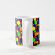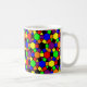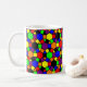 The pattern is a geometric tessellation consisting of equilateral triangles, hexagons, and squares. The colour pattern is completely regular, and consists of primary colours, secondary colours, and black. I think it looks like stained glass.