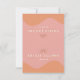 This wedding place cards features fun orange swirls, a bright pink background and retro font and sunburst. Easily edit all colours to meet your needs. This welcome sign is perfect for your fun 70's themed event.