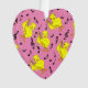 A jumble of black music notes and a cute yellow chick holding a trombone against a pink background is a unique music design for low brass musicians, music teachers and school students in concert, jazz and marching band.