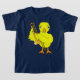 A cute yellow chick holding a trombone is a humourous gift design for low brass musicians and music teachers .