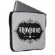 Trombone in decorative text against a white or black emblem is a unique gift design for low brass musicians, music teachers and students in concert, jazz and marching band.