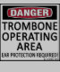 Danger, Trombone Operating Area! Ear Protection Required! This gives them fair warning! See all our musical designs on on cups, mugs, tee shirts, sweatshirts, hats, and other gifts and clothing.