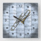 Trombone~Rolled Sheet Music~Blue Tint Background~ Square Wall Clock