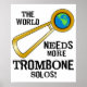 The world needs more trombone solos text with the image of the earth in the bell of a trombone is a funny low brass gift design for horn musicians, students and teachers in concert, jazz and marching band