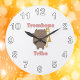 Are you a proud trombonist? Show your trombone pride with this fun clock. This clock features a brown kawaii cat holding a trombone and the words trombone tribe in pink letters. This clock also has white numbers with a black outline.