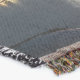 A quality printed throw has its advantages. This is a much finer weave throw than its loopier cousins, and though lighter, it is worth the investment for custom room accessorizing. The back is much prettier than the typical brown, and the fringe on the long sides very vivid, the selvage nicely done. Before photographing, I washed the throw in cold water, delicate, with a thicker woven throw the same size. On tumble dry low, this throw was dry in half the time as the other. This is a very practical quality if you use throws for furniture covers or to wrap up in frequently. The sleekness of the fabric makes it a great layer for accenting or protecting without the feeling of sitting on too much stuff. Perfect for napping or when you feel a light chill coming on. The color printing is beautiful and on this fabric, matched the design and color of my Photoshop image. This is an advantage for blending room fabrics and colors. The fringe on the short sides prints the colors from the design image and therefore varies from the side fringe. I streaked a white fractal line through the plaid pattern to give the illusion of weaving. This printed as crisp as an illusory thread, and put some white in the short side fringe, showing another advantage of print vs loomed- for artistic purposes, line lines, detail, and color integrity can be planned and preserved. My loomed throws have color limitations and more of a needlepoint texture. Print throws reproduce an exact image. The throw felt a little stiff straight out of the package, but this went away in the first delicate wash. Of course I searched the wash water for ink or bleeding and there was none.