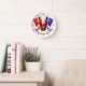 This stylish troopers colour guard clock will have you marching in time to the beat of the drum. Available on other products this military styled design features a red plumed marching bandsman hat, with red and blue crossed swords and crossed colour guard flags. Stylish red numerals and stars circle the dial and below is the colour guard slogan: Spinning around the Clock. This colour guard clock looks great on any wall and will keep you spinning. It makes a great gift for anyone associated to a colour guard display troop. More colour guard gifts and t-shirts available in the, Stand Up and Cheer store.