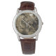 The watch looks really great! Very sharp and well done. The leather band is really nice, though for a man's watch I think it should be longer. Unfortunately, it isn't big enough for my husband's wrist but I will get a replacement because he is very excited to wear it!