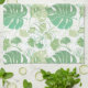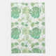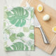 Kitchen towel with tropic pattern with green monstera and ginkgo leaves.